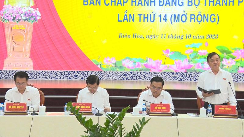 Phó Bí thư thường trực Thành ủy Biên Hòa Huỳnh Tấn Đạt gợi mở những nội dung cần thảo luận tại hội nghị.