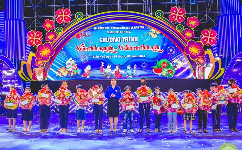 Năm nay, với chủ đề Xuân yêu thương - Tết sẻ chia, Thành đoàn, Hội đồng Đội TP.Biên Hòa tổ chức trao tặng 300 phần quà và học bổng cho các em thiếu nhi (từ ngày 29-1-2023 đến ngày 4-2-2024).