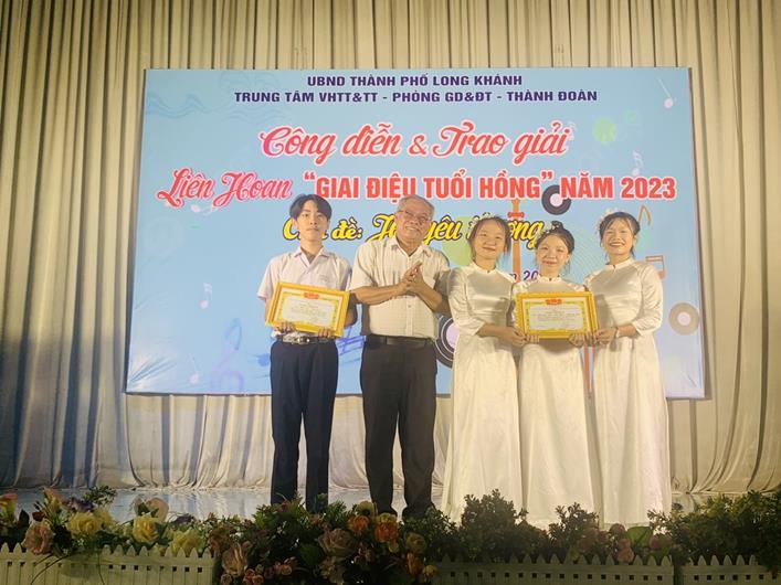 Theo đó, Ban tổ chức đã trao 22 giải Liên hoan Giai điệu tuổi hồng TP.Long Khánh (gồm: 3 giải nhất, 2 giải nhì, 4 giải ba, 13 giải khuyến khích cho các thể loại). Trong đó, tốp múa Mùa phượng nở Trường THCS Hồ Thị Hương đoạt giải nhất; tốp ca Bài ca văn hóa học đường của Trường THCS Nguyễn Trãi đoạt giải nhất.