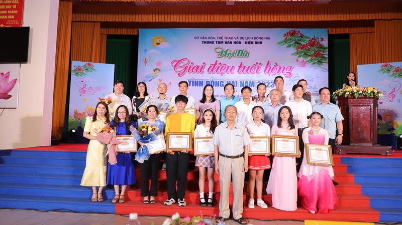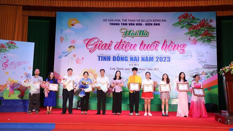 Ban tổ chức trao giải cho các tập thể và cá nhân có kết quả xuất sắc tham gia Hội thi Giai điệu tuổi hồng tỉnh Đồng Nai năm 2023