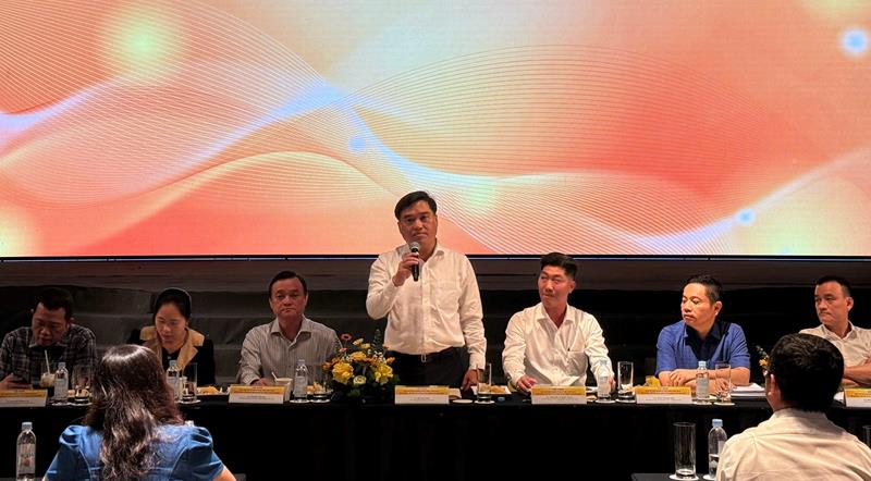 Bí thư Thành ủy Biên Hòa Hồ Văn Nam trao đổi tại buổi làm việc.