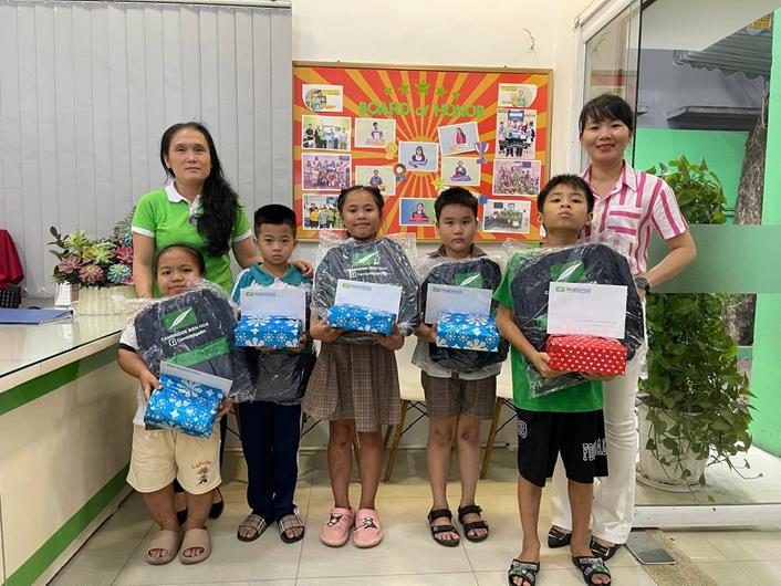 Mỗi em học sinh nhận được học bổng là tiền mặt trị giá 1 triệu đồng, cùng vở, đồ dùng học tập. Mỗi suất quà trị giá không lớn nhưng hy vọng chia sẻ phần nào khó khăn với gia đình các em.
