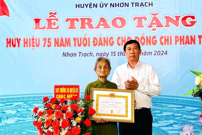 (CTT-Đồng Nai) - Ngày 15-4, Huyện ủy Nhơn Trạch đã tổ chức Lễ trao Huy hiệu 75 năm tuổi Đảng cho đồng chí Phan Thị Chi (99 tuổi) tại ấp 2, xã Long Thọ.