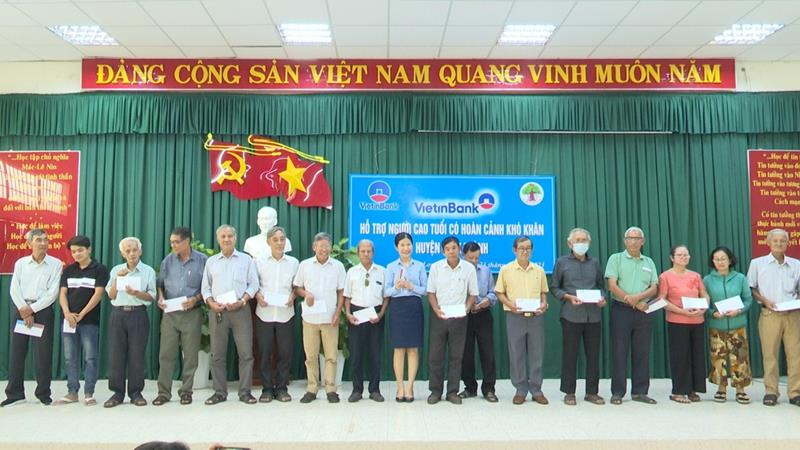 (CTT-Đồng Nai) - Hội người cao tuổi huyện Long Thành vừa phối hợp với đơn vị tài trợ là Ngân hàng VietinBank Đồng Nai tổ chức trao tặng 100 phần quà cho người cao tuổi có hoàn cảnh khó khăn trên địa bàn. Mỗi phần quà trị giá 500 ngàn đồng tiền mặt. Toàn bộ kinh phí trao quà do Ngân hàng VietinBank Đồng Nai tài trợ.