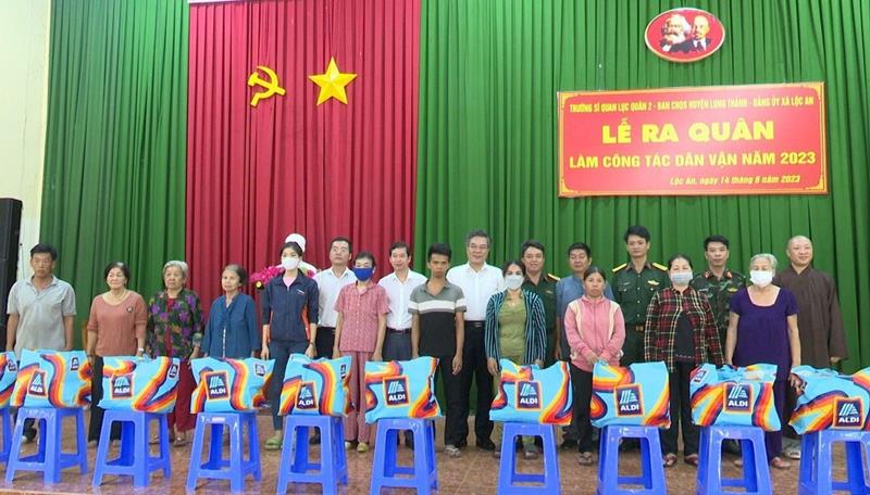 Lãnh đạo huyện và các đơn vị tham gia dân vận tặng quà người dân có hoàn cảnh khó khăn xã Lộc An