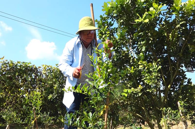 Anh Tiến đang kiểm tra khu vườn trồng chanh Thái rộng 5 ha tại ấp 6, xã Bàu Cạn, H.Long Thành