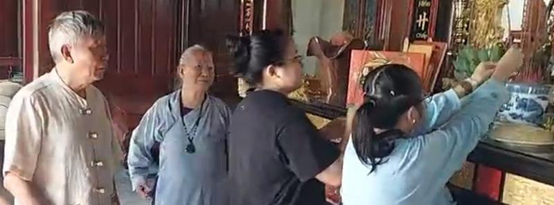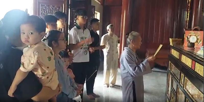 Các cháu nội, ngoại của ông Lê Doãn Cự (ấp 3, xã Vĩnh Tân, H.Vĩnh Cửu) thắp hương báo cáo với tổ tiên sau 1 năm học
