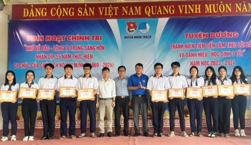 (CTT-Đồng Nai) - Huyện đoàn, Hội LHTN huyện Nhơn Trạch vừa phối hợp tổ chức tuyên dương Thanh niên tiên tiến làm theo lời Bác và danh hiệu Học sinh 3 tốt năm học 2023 - 2024.