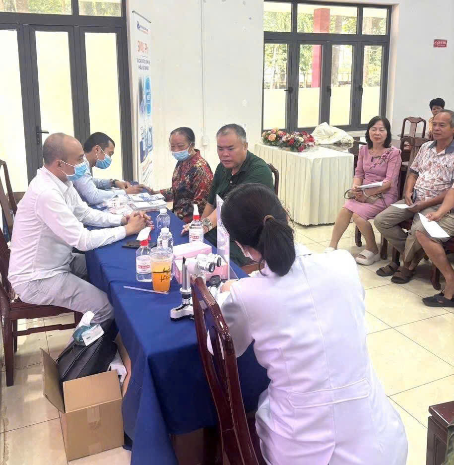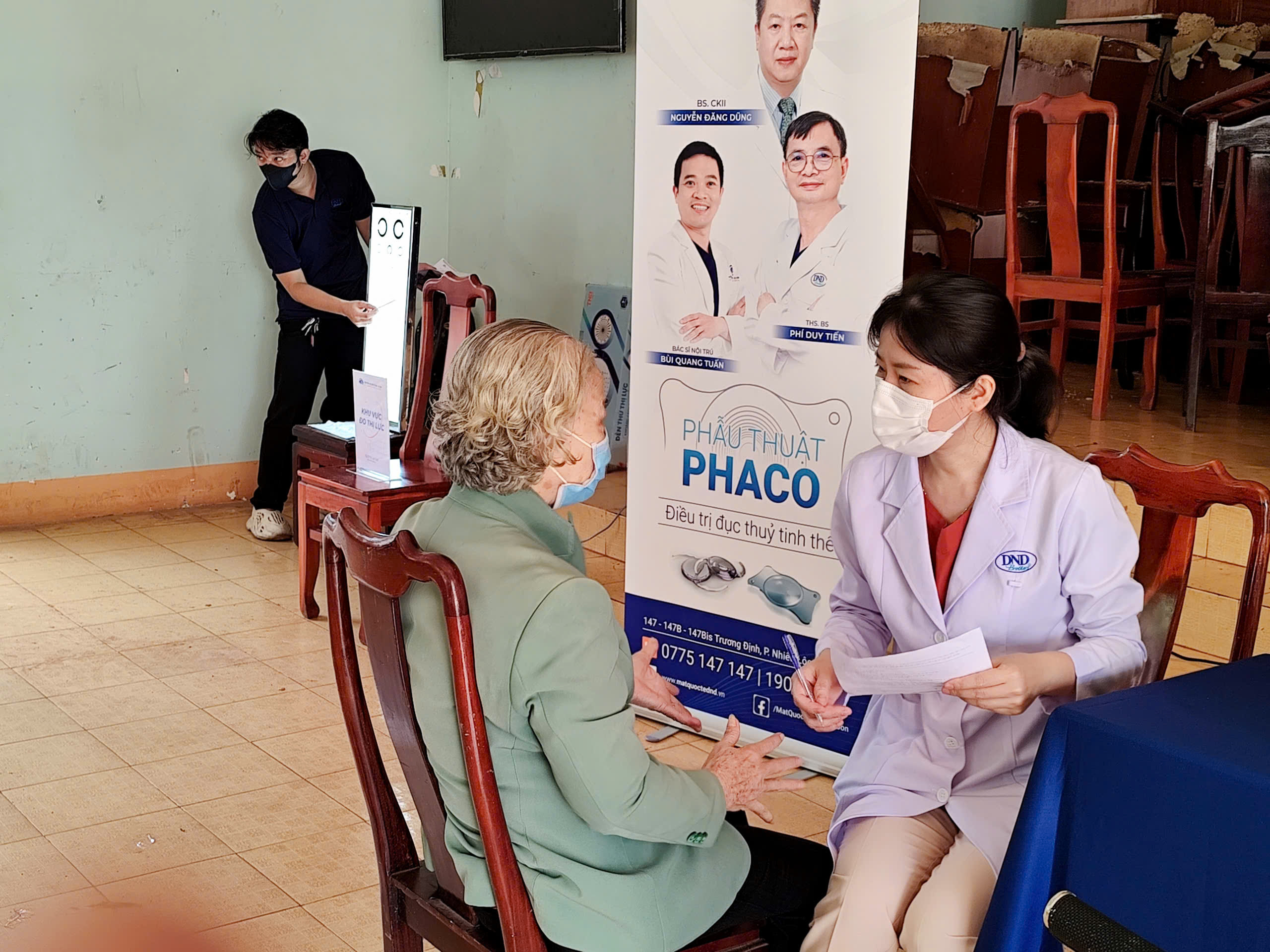 Các Bác sĩ của Bệnh viện Mắt quốc tế DND Sài Gòn đang khám mắt cho người dân