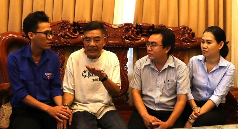 Ông Phạm Đình Khương (thứ hai từ trái qua) kể lại sự kiện thảm sát cách đây 60 năm với thế hệ trẻ