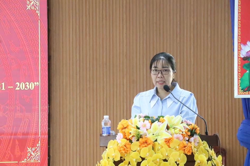 Đồng chí Văn Thị Ngọc Điệp – Phó Bí thư Thường trực Đảng ủy xã phát biểu tại hội nghị