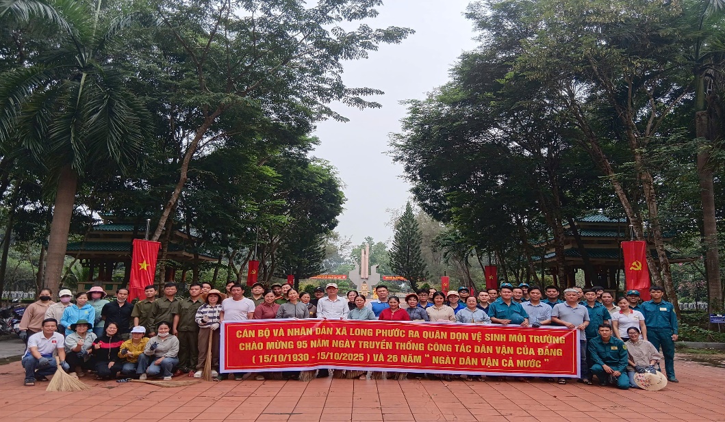 (CTT-Đồng Nai) - Hướng tới kỷ niệm 95 năm Ngày truyền thống Công tác Dân vận của Đảng (15/10/1930 – 15/10/2025) và 26 năm Ngày Dân vận cả nước, cán bộ và đảo Nhân dân xã Long Phước đã đồng loạt ra quân thực hiện hoạt động tổng vệ sinh môi trường trên địa bàn xã.