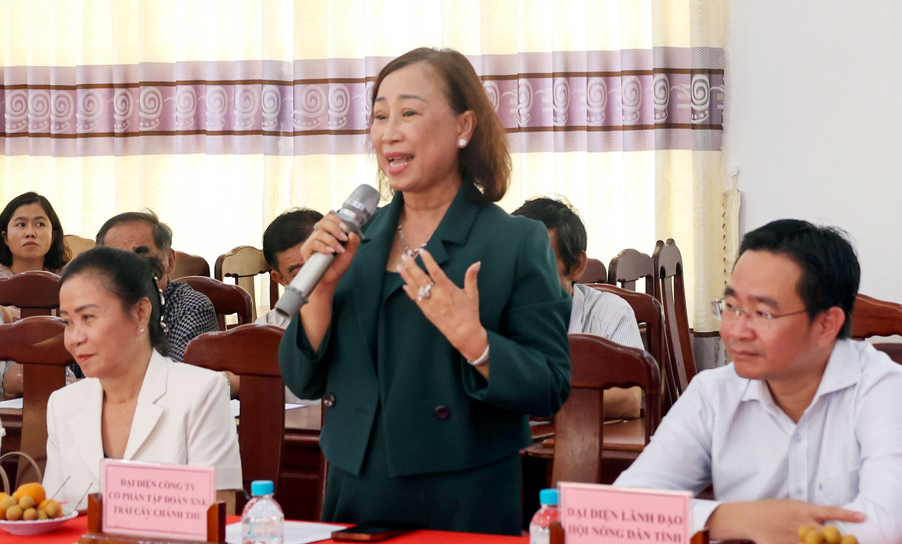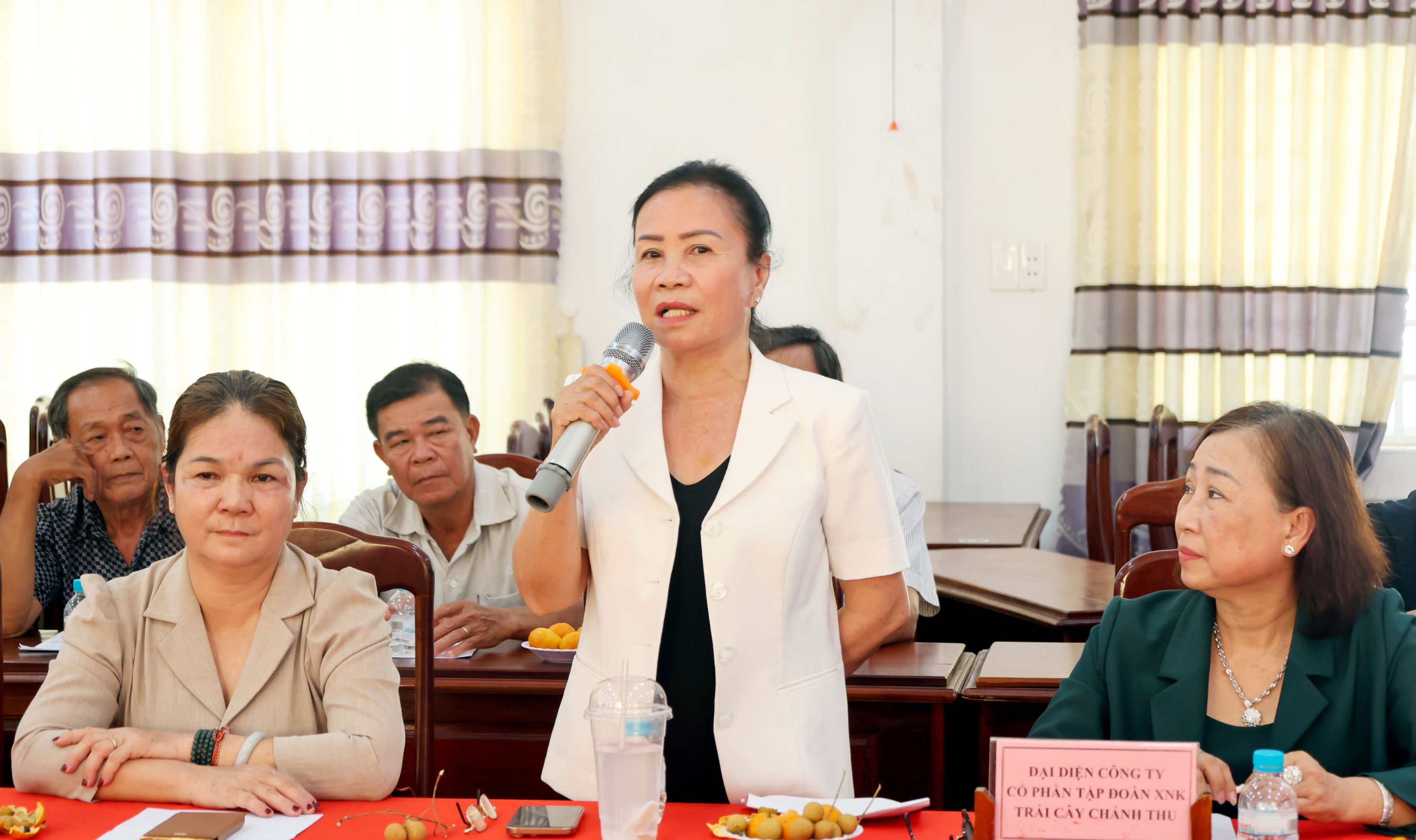 Bà Nguyễn Thị Hồng Thu, Tổng giám đốc Công ty TNHH Xuất Nhập khẩu Trái cây Chánh Thu phát biểu tại buổi làm việc