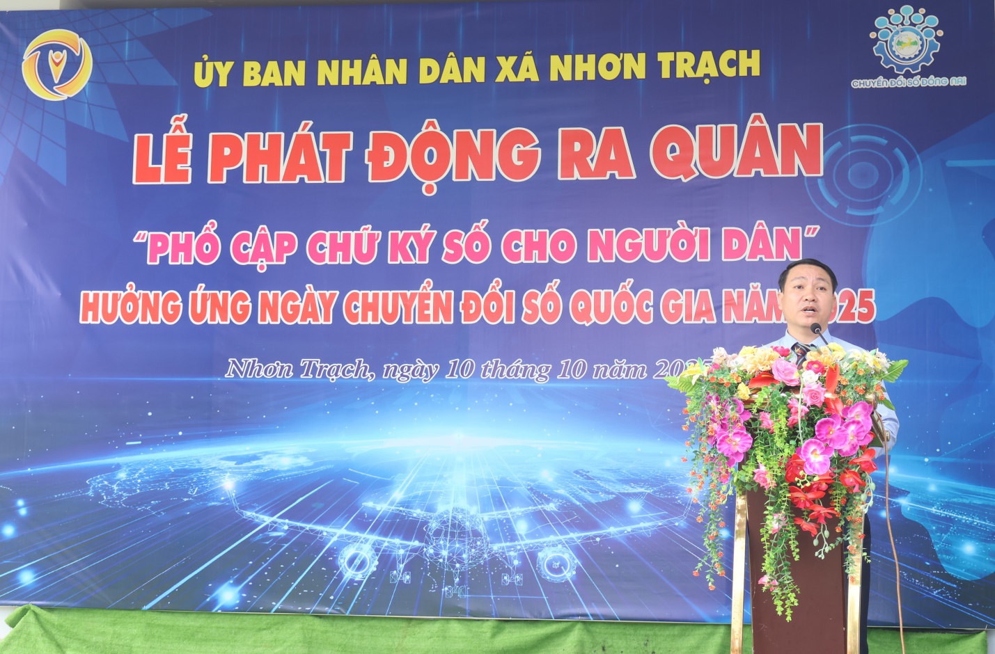 Tại buổi lễ, Phó Chủ tịch UBND xã Lê Ngọc Lân cho biết, chuyển đổi số là xu thế tất yếu và là động lực quan trọng, thời gian qua xã Nhơn Trạch đã và đang triển khai đồng bộ nhiều giải pháp, trong đó phổ cập chữ ký số cá nhân. Theo đó, UBND xã chính thức phát động chiến dịch “Phổ cập chữ ký số cho người dân” trong 30 ngày, từ 10-10 đến 10-11-2025, đặt mục tiêu đến hết năm 2025 có 50% dân số trưởng thành sở hữu và sử dụng chữ ký số.
