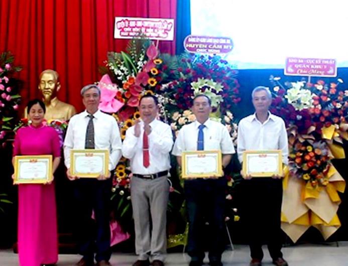Lãnh đạo xã Sông Nhạn khen thưởng cho các cá nhân có đóng góp cho sự phát triển của địa phương tại buổi lễ