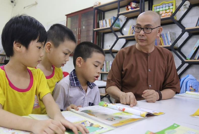 Ông Nguyễn Văn Lâm - Mái ấm tình thương Phúc Lâm hướng dẫn các trẻ học bài