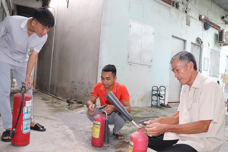 Ông Phạm Văn Khoan (KP4, P.Bửu Long, TP.Biên Hoà), chủ phòng trọ hướng dẫn sinh viên ở trọ nội quy và cách xử lý tình huống khi xảy ra cháy, nổ