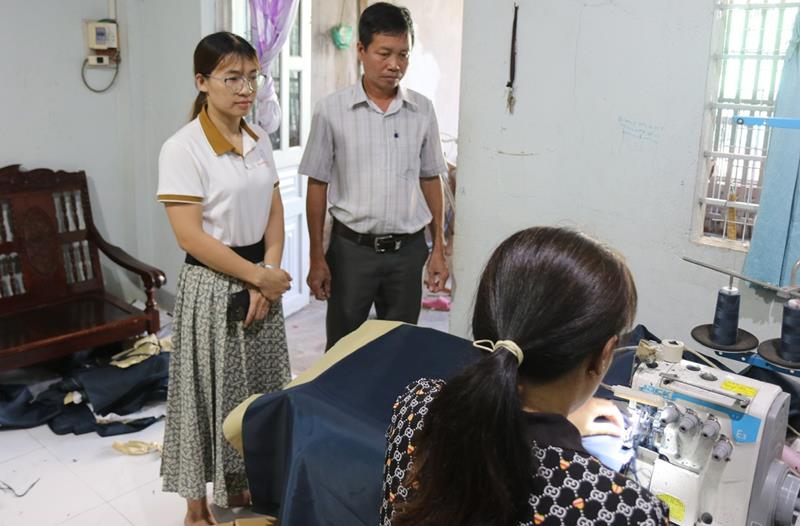 Gia đình bà Nguyễn Thị Nhâm thuộc hộ nghèo, chồng bà là công nhân may, còn bà ở nhà nhận sửa quần áo cho hàng xóm, chăm sóc con. Mới đây, Ban Công tác Mặt trận khu phố, Ủy ban MTTQ Việt Nam phường trợ giúp thông qua việc hỗ trợ 6 triệu đồng để mua thiết bị cần thiết để nhận hàng về may gia công tại nhà.
