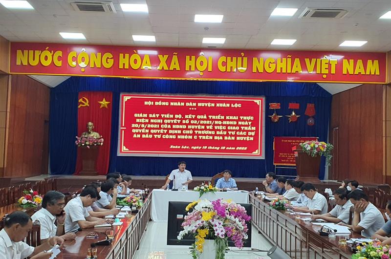 TTĐT - Thường trực HĐND và Ban kinh tế HĐND huyện Xuân Lộc đã có buổi giám sát tại UBND huyện về kết quả triển khai thực hiện các nghị quyết số 02/2021/NQ-HĐND ngày 20/8/2021 của HĐND huyện về việc giao thẩm quyền quyết định chủ trương đầu tư các dự án đầu tư công nhóm C trên địa bàn huyện.