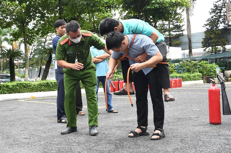 Tại buổi tập huấn, báo cáo viên đã phổ biến kiến thức cơ bản về phòng cháy, chữa cháy và cứu nạn, cứu hộ; các tình huống phát sinh cháy nổ; cách thức sử dụng các phương tiện, hệ thống phòng cháy, chữa cháy ở cơ sở; hướng dẫn cụ thể về kỹ năng xử lý các tình huống có thể xảy ra cháy trong thực tế ở gia đình, cơ quan; xử lý trường hợp cháy pin của các phương tiên xe đạp, xe máy điện… Đồng thời hướng dẫn thực hành sử dụng các thiết bị, phương tiện chữa cháy thực tế; phương pháp cứu hộ; những kỹ năng thoát hiểm cần thiết khi xảy ra cháy lớn