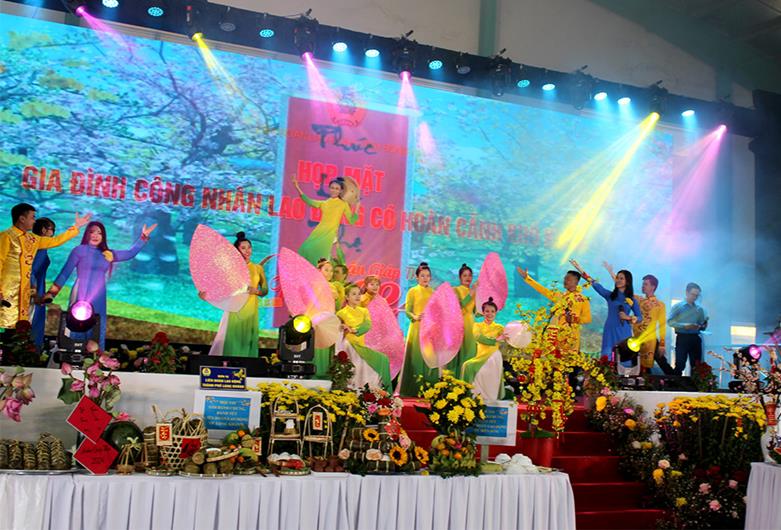 Tại đây, Liên đoàn Lao động tỉnh đã trao tặng mỗi gia đình một phần quà trị giá 330 ngàn đồng và một phần bao thư tiền mặt trị giá 1,5 triệu đồng cùng một cặp bánh chưng hoặc bánh tét do chính tay các cán bộ Công đoàn gói và nấu. Cùng với đó, các gia đình còn được thưởng thức chương trình văn nghệ, thưởng thức mâm cơm ấm áp đậm chất Tết, Xuân.