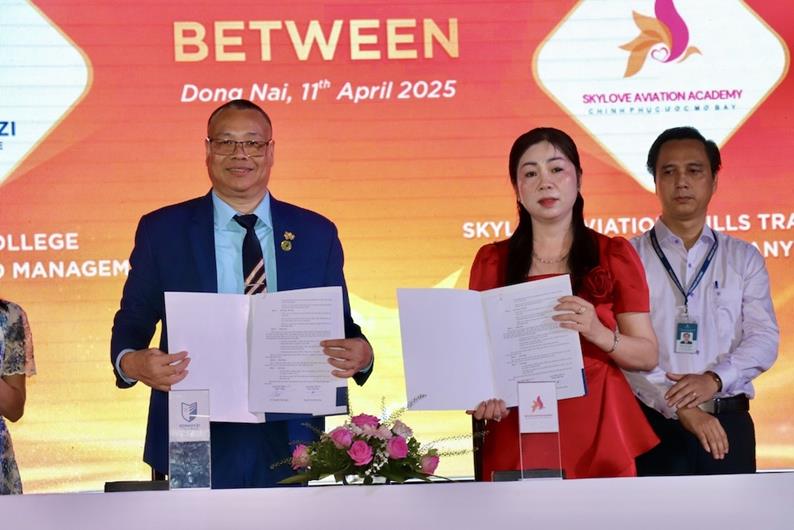 Lãnh đạo Trường Cao đẳng Công nghệ và Quản trị Sonadezi và đại diện doanh nghiệp ký kết biên bản ghi nhớ hợp tác