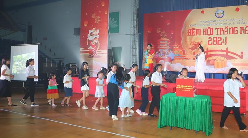 (CTT - Đồng Nai) - Tối 12-9, Đoàn cơ sở Sở Văn hóa, Thể thao và Du lịch (VH-TTDL) phối hợp với Chi đoàn Sở Tài chính tổ chức chương trình Đêm hội trăng rằm năm 2024 tại Trung tâm Huấn luyện thi đấu thể dục thể thao tỉnh. Có 500 em thiếu nhi đã tham gia.