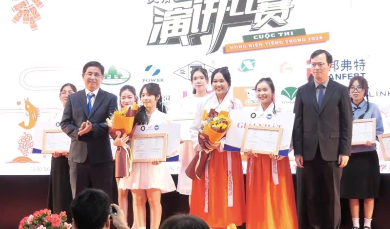 Lãnh đạo Trường Đại học Lạc Hồng và đại diện Tổng lãnh sự quán Trung Quốc tại Thành phố Hồ Chí Minh trao giải cho các thí sinh