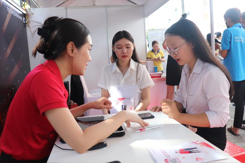 Sinh viên trả lời phỏng vấn tuyển dụng tại Ngày hội việc làm Trường Đại học Lạc Hồng.