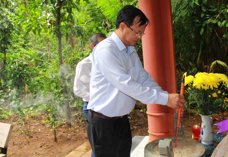 Trưởng Ban Dân vận Tỉnh ủy Cao Tiến Dũng dâng hương tại Nhà bia tưởng niệm Ban Dân vận - Mặt trận Trung ương cục Miền Nam tại Chiến khu Đ (thời kỳ 1961-1962)