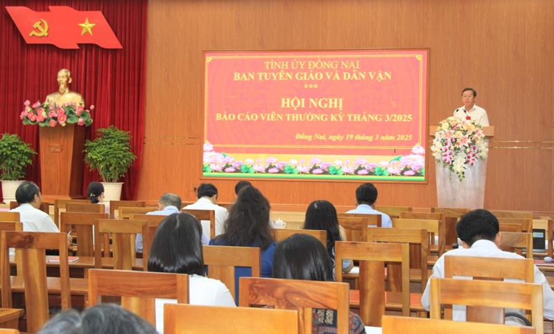(CTT-Đồng Nai) – Sáng 19-3, Ban Tuyên giáo và Dân vận Tỉnh ủy đã tổ chức Hội nghị báo cáo viên thường kỳ tháng 3 năm 2025 bằng hình thức trực tiếp và trực tuyến.