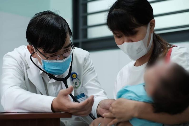 Bác sĩ Mạc Quốc Dũng khám sức khỏe cho bệnh nhi