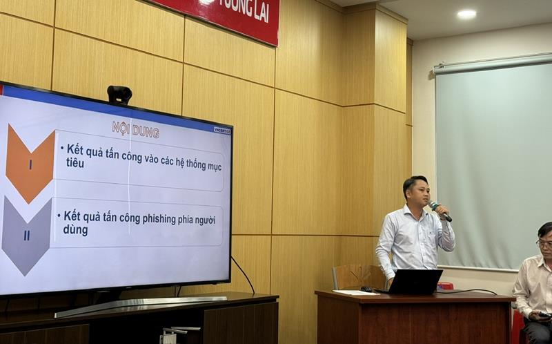 Đại diện Trung tâm Ứng cứu khẩn cấp không gian mạng Việt Nam khu vực phía Nam chia sẻ kinh nghiệm liên quan đến bảo đảm an toàn thông tin các hệ thống thông tin của tỉnh Đồng Nai.