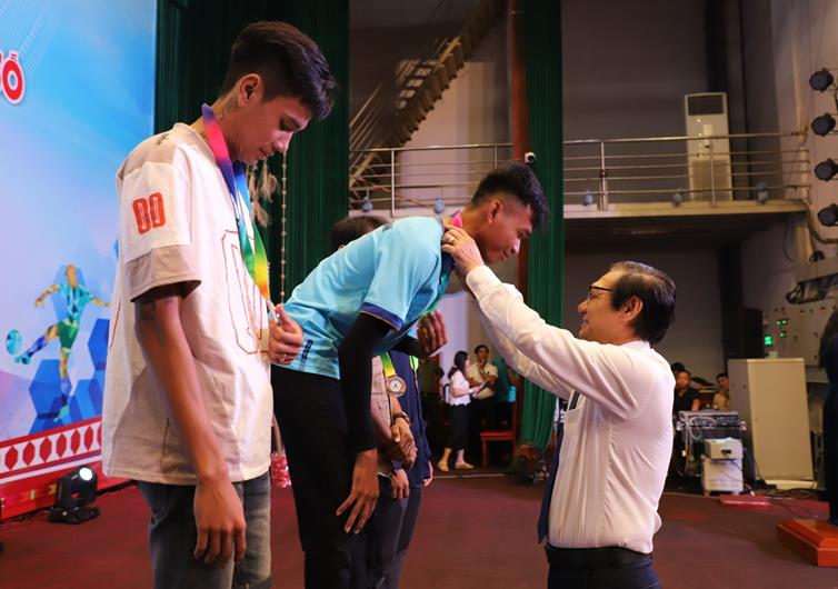 Phó Chủ tịch UBND tỉnh Nguyễn Sơn Hùng trao giải nhất, nhì, ba môn bóng đá cho các đơn vị