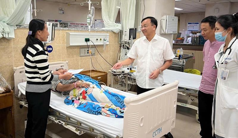 Giám đốc Bệnh viện Đa khoa Đồng Nai Ngô Đức Tuấn tặng quà, động viên bệnh nhân.