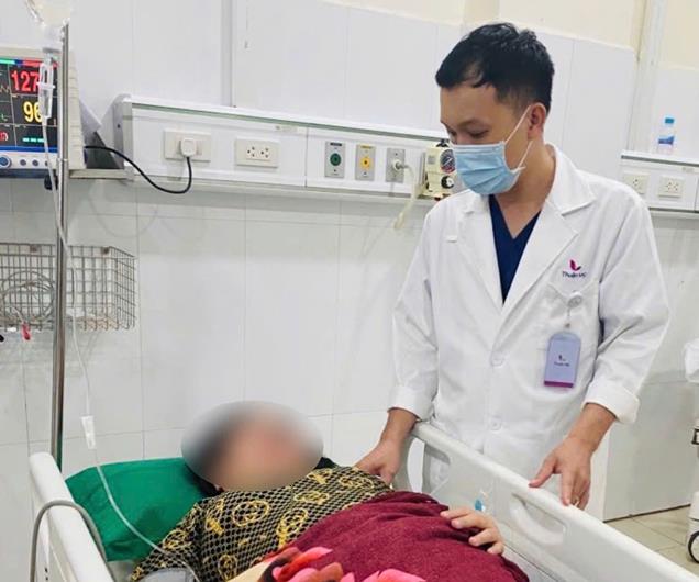 Bác sĩ kiểm tra sức khỏe cho bệnh nhân sau khi được điều trị bằng thuốc tiêu sợi huyết.