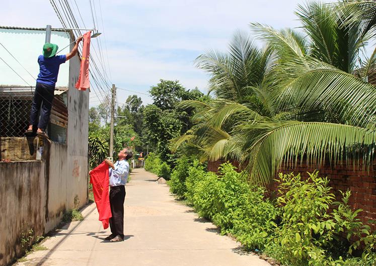 Người dân treo cờ chào mừng ngày lễ lớn của đất nước