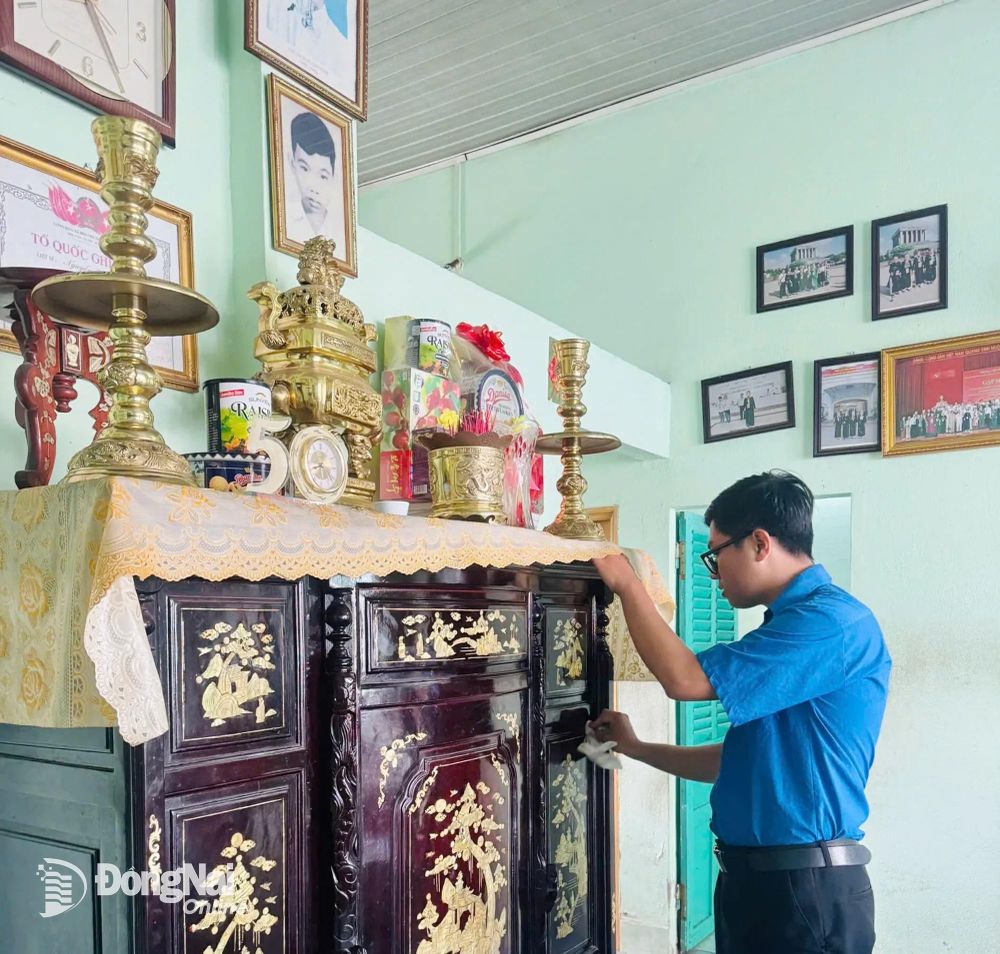 Không chỉ nấu cơm, các bạn đoàn viên còn dọn dẹp nhà cửa, lau dọn bàn thờ liệt sĩ, thay hoa cúng, bày biện mâm trái cây để không gian bàn thờ trang trọng và tươm tất. Ông Huỳnh Văn Chậm là em trai của liệt sĩ Huỳnh Văn Chạy và là cháu gọi liệt sĩ Nguyễn Văn Ân bằng cậu, bày tỏ sự xúc động trước nghĩa cử đền ơn đáp nghĩa của các bạn đoàn viên thanh niên. Gia đình cũng vì vậy mà thấy ấm lòng khi sự hy sinh của anh, của cậu mình vẫn được thế hệ sau nhớ đến.