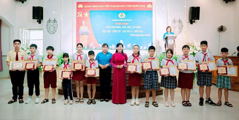 Tại buổi lễ, có 559 đạt thành tích xuất sắc trong suốt các cấp học được tuyên dương. Nhiều em là tấm gương vượt khó học giỏi, đạt giải cao trong các kỳ thi cấp tỉnh và huyện. Đặc biệt, có những gia đình công nhân có 2 con đều được khen thưởng.