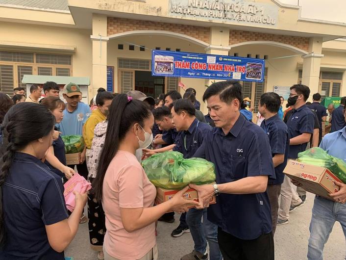 Công đoàn công ty tặng quà công nhân nhà trọ