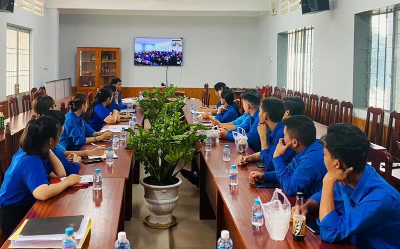Cán bộ, đoàn viên, thanh niên tham gia hội nghị tại các điểm cầu trực tuyến