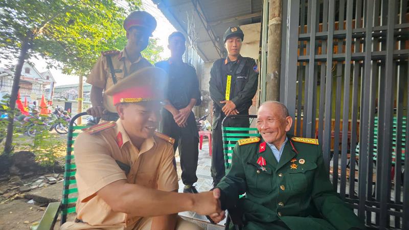 Cảnh sát giao thông Suối Tre (Phòng Cảnh sát giao thông Công an tỉnh Đồng Nai) thăm hỏi, động viên tinh thần cựu chiến binh Trần Văn Thanh