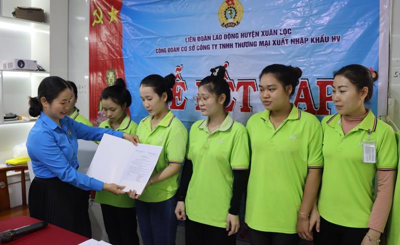 Công đoàn cơ sở Công ty TNHH xuất nhập khẩu HV (huyện Xuân Lộc) tổ chức lễ kết nạp đoàn viên mới