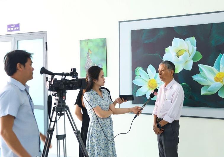 Nghệ sĩ nhiếp ảnh Bùi Viết Đồng trả lời phỏng vấn của các cơ quan báo chí trong tỉnh