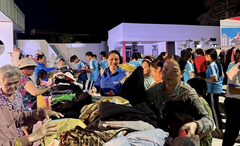 Người dân xã Long Thọ, huyện Nhơn Trạch tham gia gian hàng 0 đồng do Trung tâm Văn hóa - điện ảnh Đồng Nai tổ chức vào tối 25-4