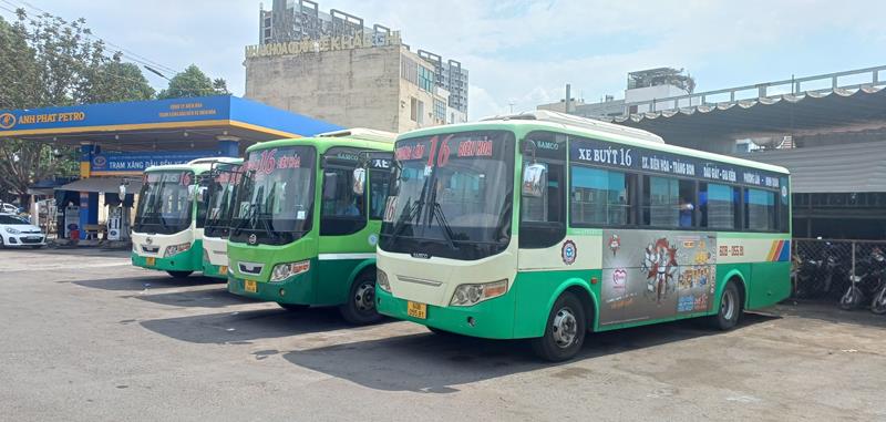 Xe buýt tuyến số 16 (tại Bến xe Biên Hòa, phường Quang Vinh, thành phố Biên Hòa) sẵn sàng phục vụ hành khách trong dịp nghỉ lễ