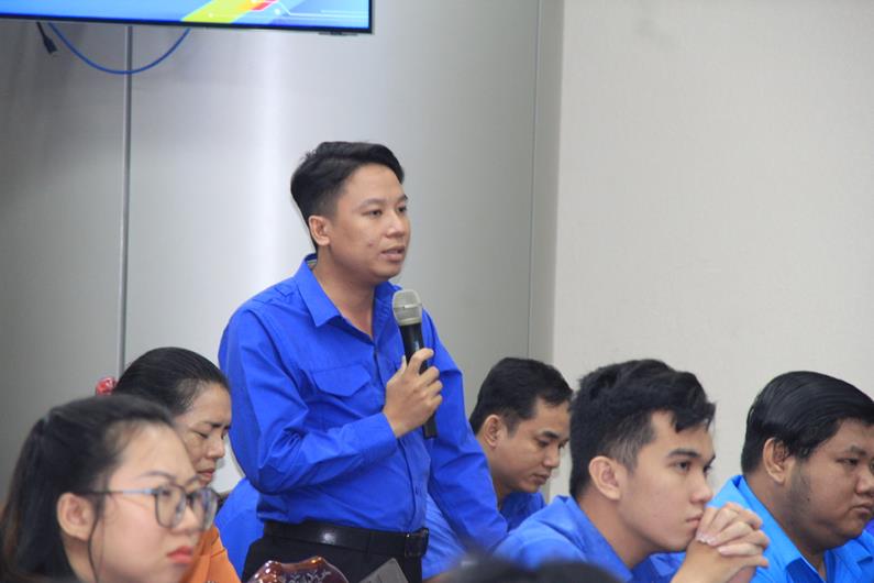 Đại diện cán bộ, đoàn viên, thanh niên phát biểu ý kiến tại buổi đối thoại
