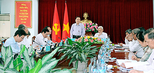 Sáng qua 19-4, Đoàn công tác đã có buổi làm việc với Tỉnh ủy. Bí thư Tỉnh ủy Nguyễn Phú Cường tiếp và làm việc với đoàn; cùng dự có Trưởng ban Dân vận Tỉnh ủy Hồ Thanh Sơn, Phó chủ tịch UBND tỉnh Võ Văn Chánh, Phó chủ tịch thường trực Ủy ban MTTQ Việt Nam tỉnh Nguyễn Văn Dũng, cùng lãnh đạo các ngành, đoàn thể của tỉnh.