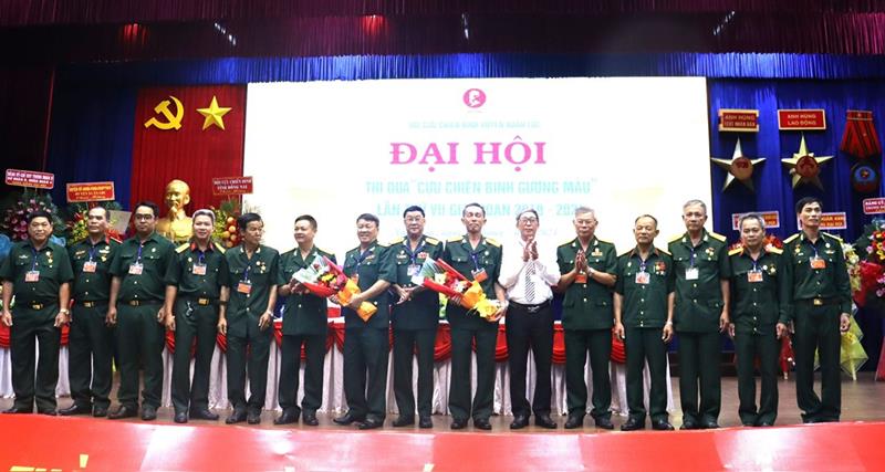Thường trực Hội Cựu chiến binh tỉnh tặng hoa, chúc mừng đoàn đại biểu huyện Xuân Lộc dự Đại hội Cựu chiến binh gương mẫu tỉnh giai đoạn 2019-2024