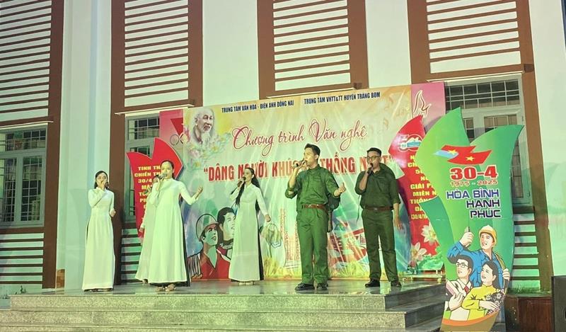 (CTT-Đồng Nai) - Hướng tới kỷ niệm 50 năm kỷ niệm Ngày đất nước thống nhất, Trung tâm Văn hóa - Điện ảnh Đồng Nai đang triển khai chương trình văn nghệ "Dâng Người khúc ca thống nhất" từ ngày 12 đến 30 tháng 4 năm 2025, phục vụ Nhân dân tại 11 huyện, thành phố.